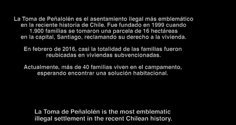 Ethnographer / Director Cristian Filipe Ros Pilar introduces the audience to Gina and a small group of Chilean women. Living on the outskirts of Santiago, Chile, we meet them 15-years after they built a new community on16-hectares of land illegally appropriated, in 1996. Appropriated with the purpose of providing their families with decent housing.