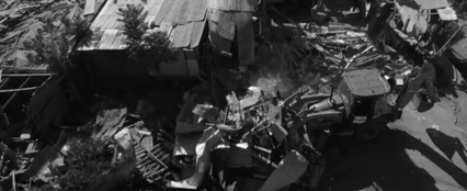Pilar’s cinematography and use of master shots at the beginning of each chapter, establish the immigrants place within the community, the trauma of watching the destruction of their homes, finally, a view of a group of apartment buildings that will become their new ‘homes’.