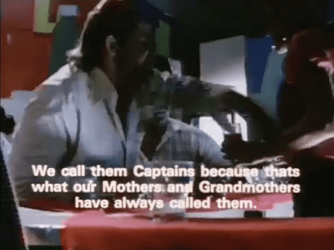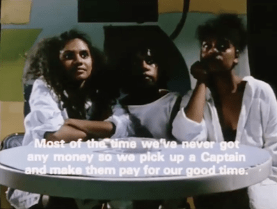 The main storyline threading the film together is based on a fictional narrative, but one that Moffat says “is a very real thing” (Moffat, 1988, p. 152). The film follows three Aboriginal women in the urban landscape of Sydney who exploit a drunk white man called a “Captain” to obtain drinks, food, and money on a night out. The scenes of this particular narrative are imbued with a sort of raw authenticity, likely reflective of Moffat’s intimacy with the subject, as she states “I used to do it, I used to do it with my sisters” (Moffat, 1988, p. 152).